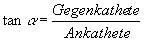 | Ist x das Bogenmaß und a das Gradmaß eines Winkels, so gilt: | |||