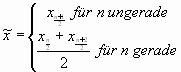 Unter dem Median versteht man den Wert, der bei einer geordneten Stichprobe den mittleren Wert darstellt. Ist die Zahl der Elemente n der Stichprobe gerade, dann ist das arithmetische Mittel der beiden mittleren Werte der Median.
